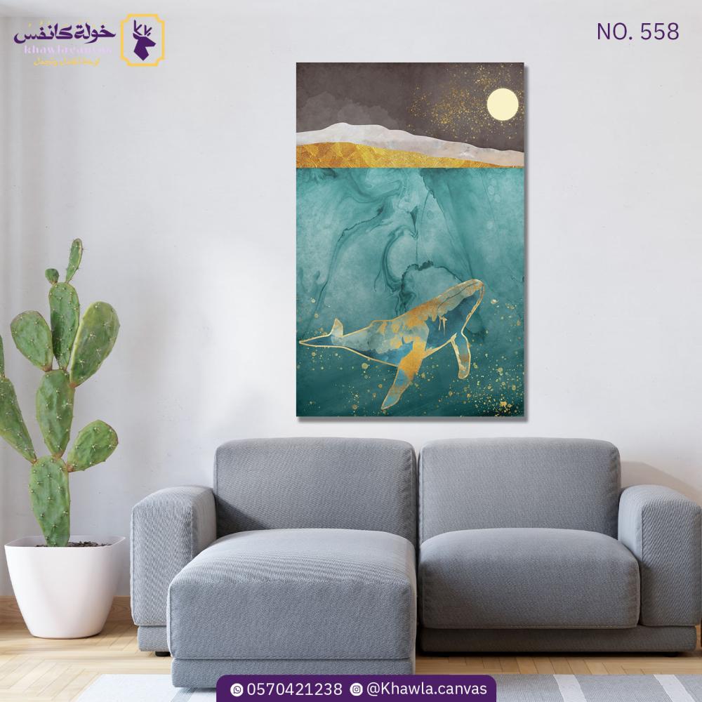 لوحة فنية مودرن لحوت ذهبي نفس و مشدودة على إطار من الخشب.