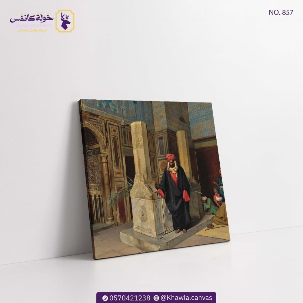 تمثّل هذه اللوحة مشهدًا داخليًا ساحرًا من أحد مساجد القاهرة، حيث يظهر رجل مسلم بلباس تقليدي يؤدي الصلاة في عزلة وخشوع داخل "الجامع الأزرق". الجدران المزخرفة بالأرابيسك والنقوش الإسلامية الدقيقة تحيط بالمصلي، وتخلق خلفية غنية بالبُعد الثقافي والجمالي.