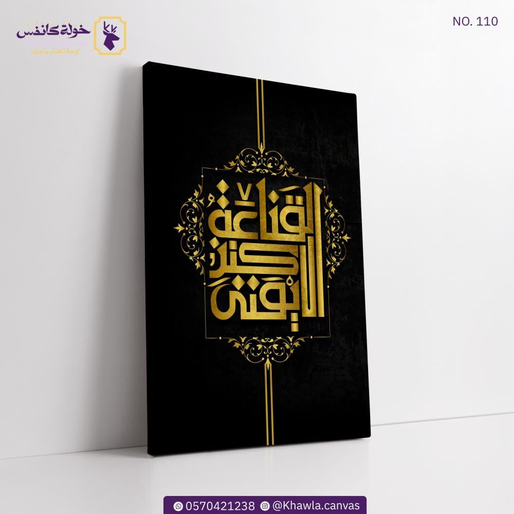 لوحة جدارية بالخط العربي الجميل بعنوان (القناعة كنز لا يفنى)، تطبع على أجود أنواع قماش الكانفس و مشدودة على إطار خشب مخفي