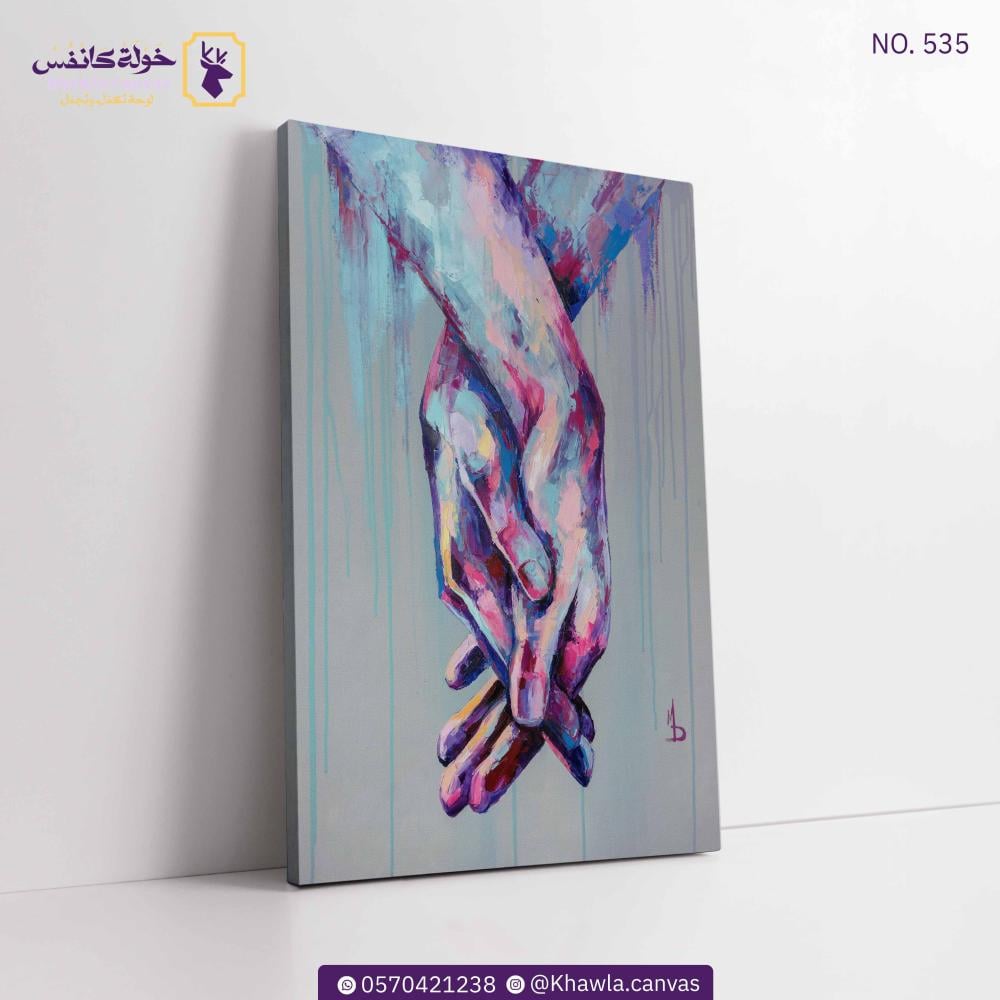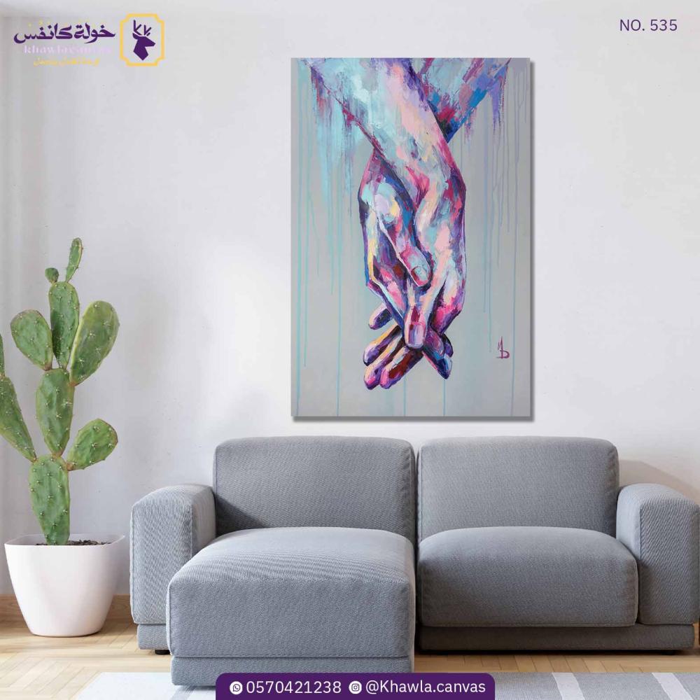 لوحة فنية ليدين تمسكان بعض بعنوان لنبقى معناً مطبوعة بواسطة أحدث المكائن اليابانية عالية الدقة و الوضوح (رولاند) على قماش الكانفس و مشدودة على إطار من الخشب.