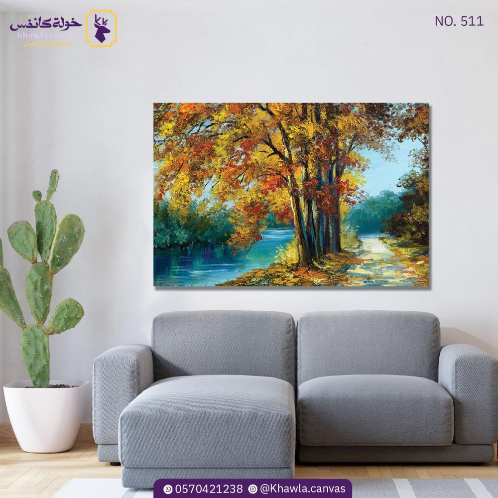 لوحة فنية لتساقط أوراق الشجر في فصل الخريف ، مطبوعة على أجود أنواع قماش الكانفس و مشدودة على إطار من الخشب المخفي