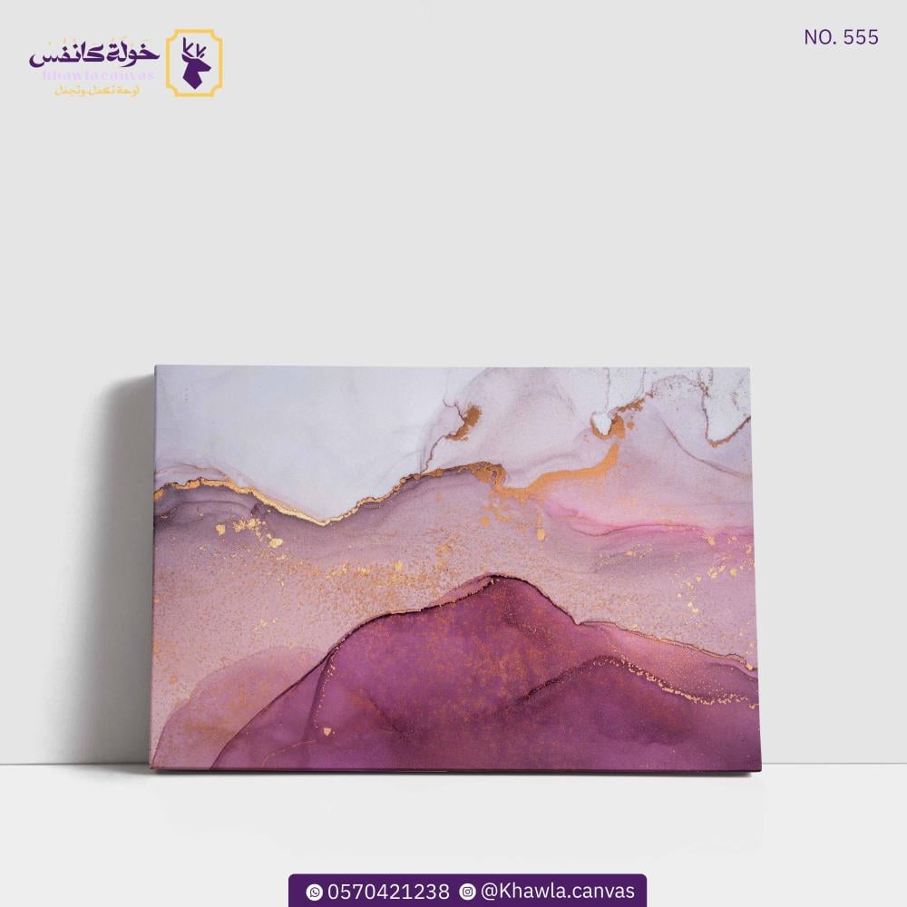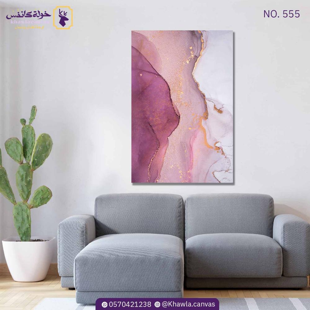 لوحة فنية بالفن التجريدي الحديث بأمتزاج اللون الوردي و البنفسجي و اللون الذهبي