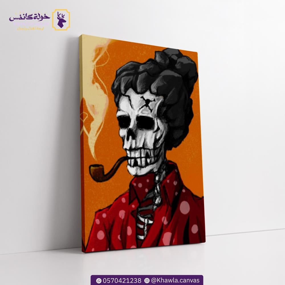 لوحة فنية لجمجمة مكسورة للرسام أنس عسيري، مطبوعة على أجود أنواع قماش الكانفس و مشدودة على إطار من الخشب المخفي