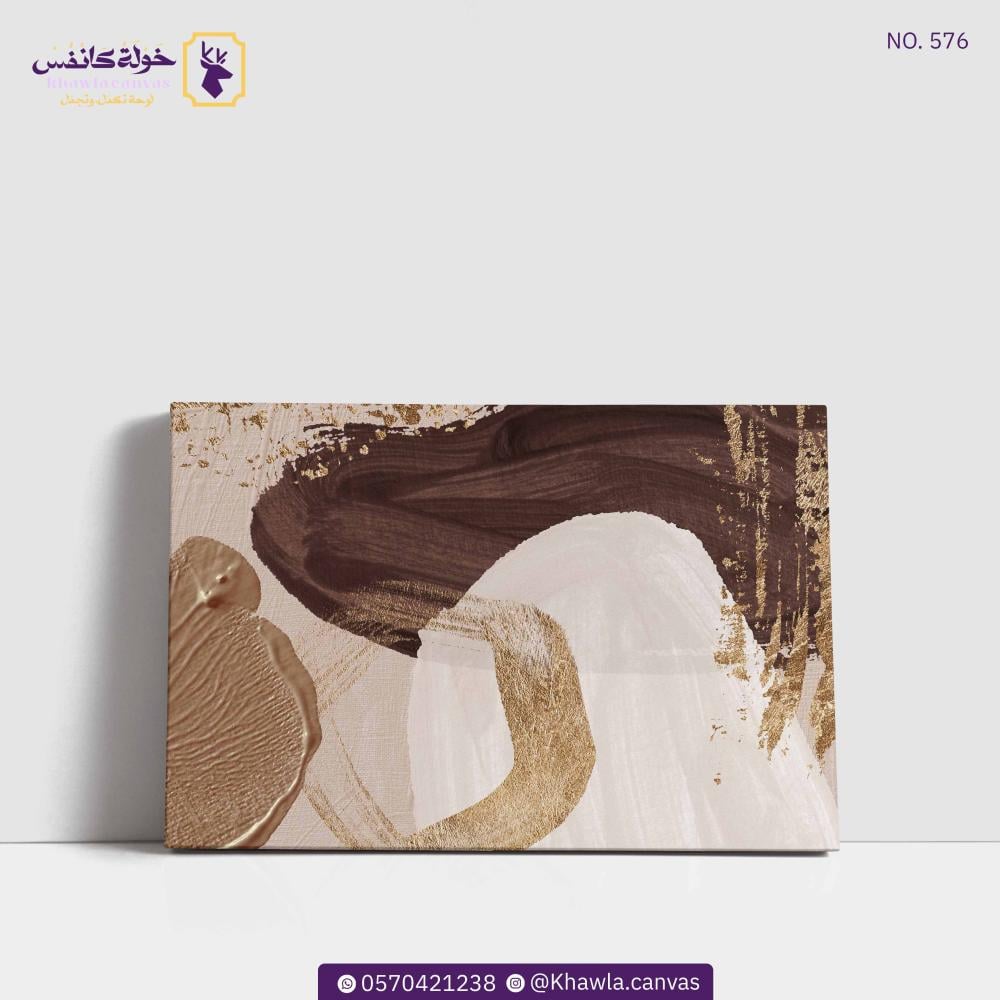 لوحة للفن التجريدي لمزيج من الألوان البيج و البني و الذهبي ، مطبوعة على أجود أنواع قماش الكانفس و مشدودة على إطار من الخشب المخفي