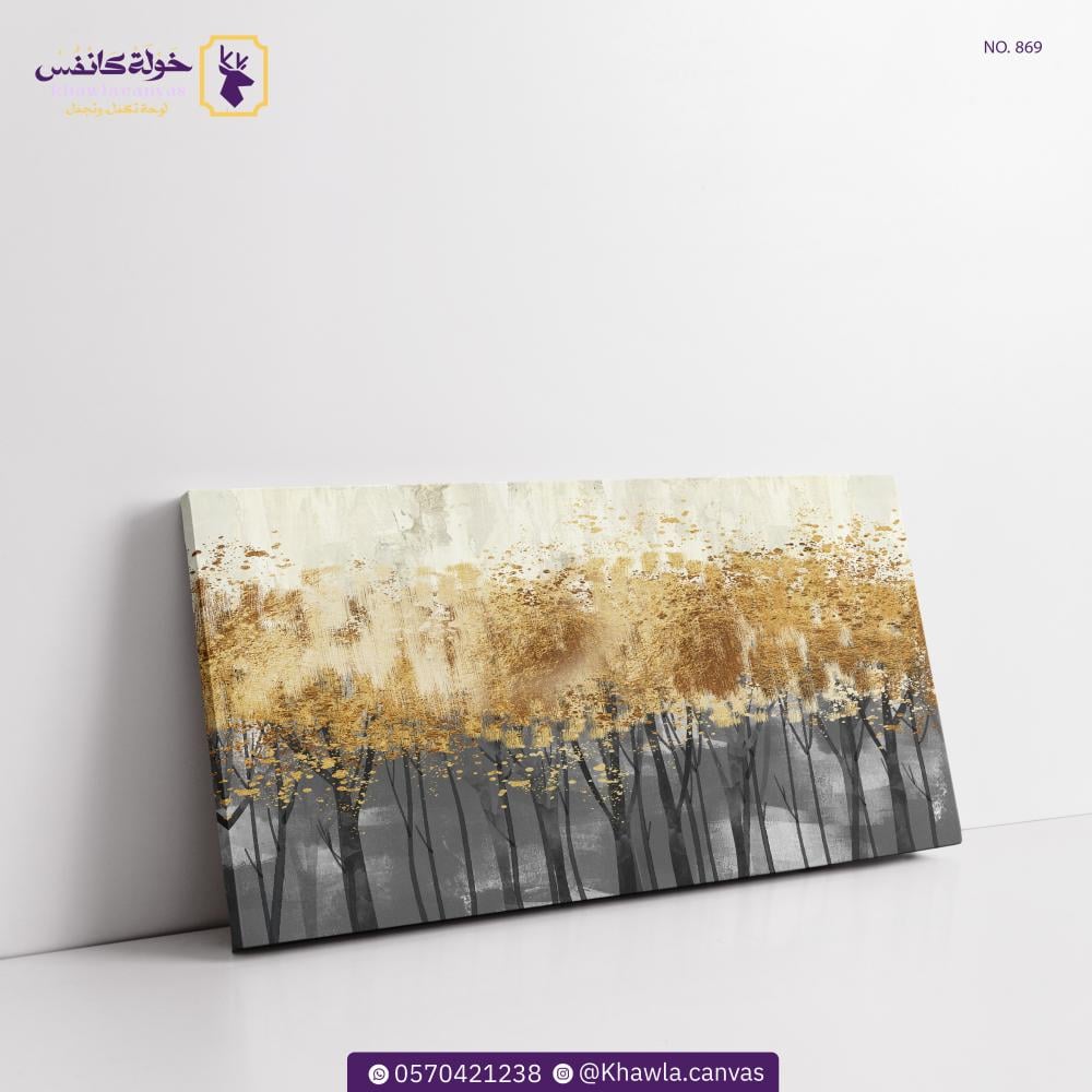A luxurious canvas print from Khawla Canvas , combining modern art with the spirit of nature. Trees drawn in elegant shades of gray are adorned with a luxurious golden sheen that gives a sense of calm and luxury. Its design adds a sophisticated touch to any space, such as living rooms, bedrooms, or offices. It comes ready to hang to transform the atmosphere and make it more elegant and beautiful. Decorate your home with it and add a touch of art.