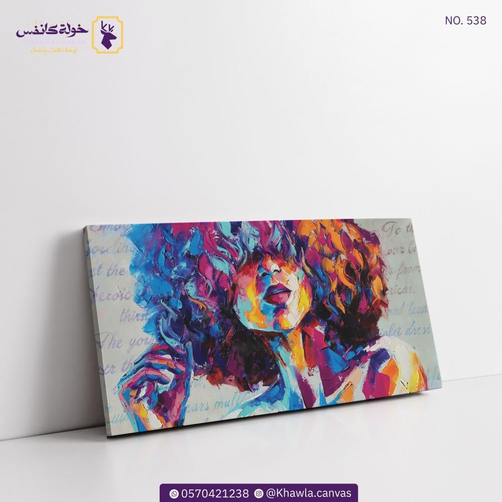 Abstract art painting of a girl with curly hair, printed by the latest Japanese high-resolution Roland machines on canvas and stretched on a wooden frame.