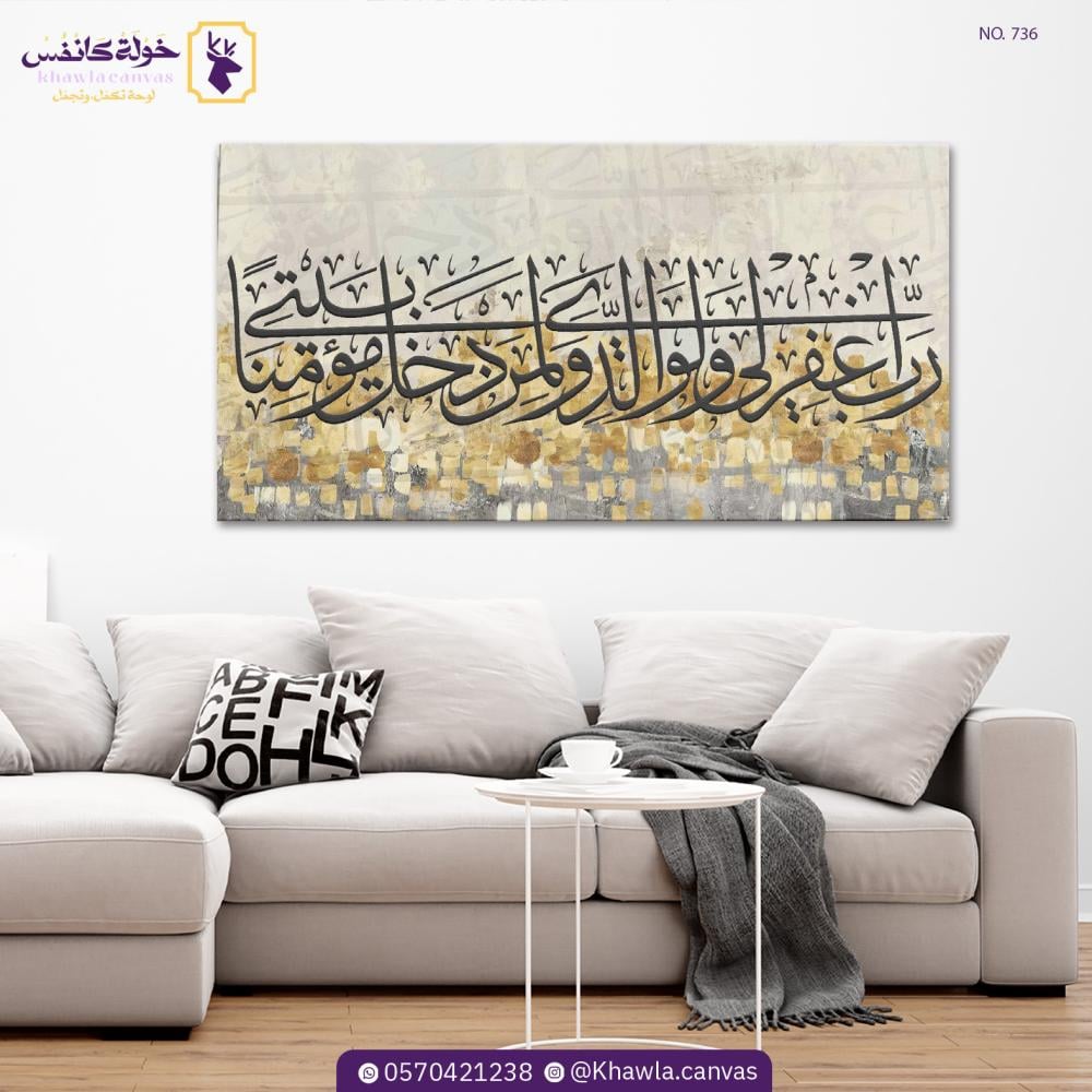 This distinctive artwork features the Quranic phrase: " My Lord, forgive me and my parents and whoever enters my house a believer , " part of verse 29 of Surat Al-Mu'minun, making it a spiritual and inspiring addition to any home. What distinguishes this artwork is the selection of calm and harmonious colors that easily blend with various decor and furnishing styles, making it suitable for most modern and classic homes alike.