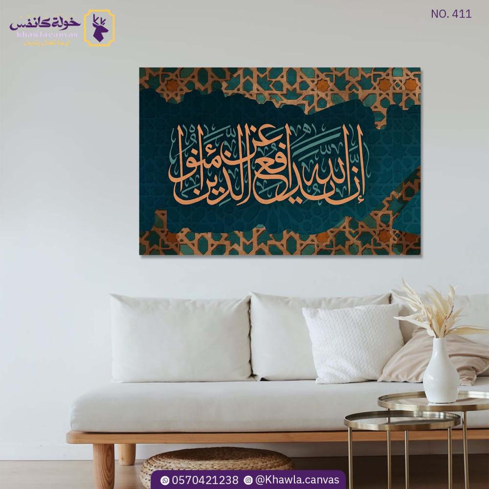 A Quranic verse written by the most skilled calligraphers with a luxurious design, printed on the finest canvas and stretched on wood, ready for your wall.