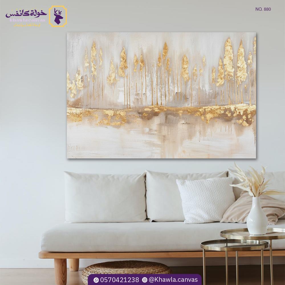 This hand-painted wall art panel features a minimalist geometric design, combining neutral colors with luxurious gold accents to create an elegant balance between simplicity and luxury. It can be used as an artistic backdrop, wall collage, or decorative card, reflecting a modern and creative flair for interior design.