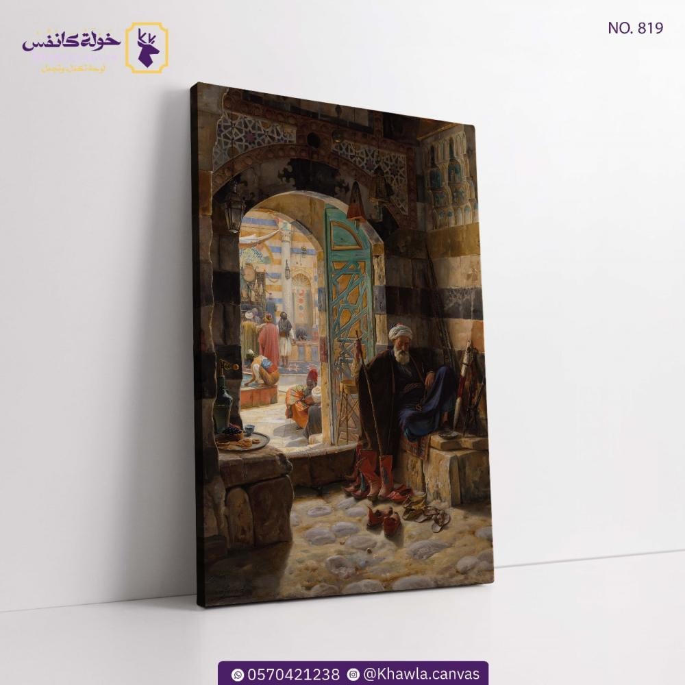 The painting is saturated with natural light that streams onto the decorated walls, reflecting a meticulous realism that captivates the eye and emulates the splendor of the ancient East.