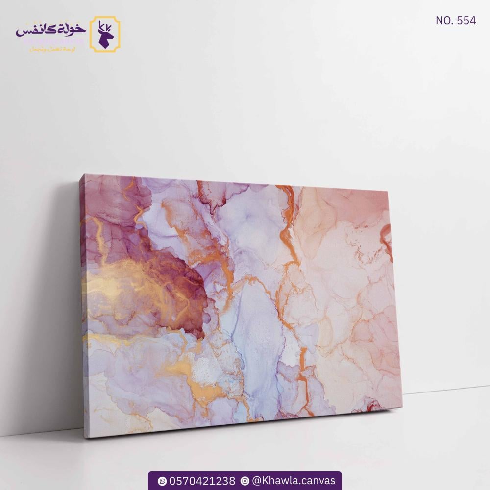 Modern abstract art painting with a mixture of pink, purple, sky blue and gold
