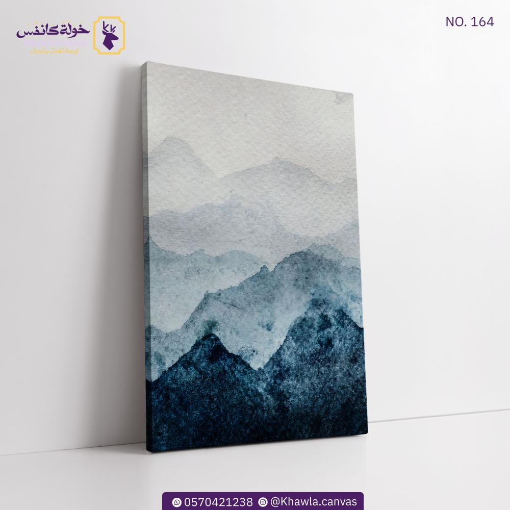 Set of three matching abstract art paintings of a mountain in white and blue, printed on the finest quality canvas and stretched over a hidden wooden frame.