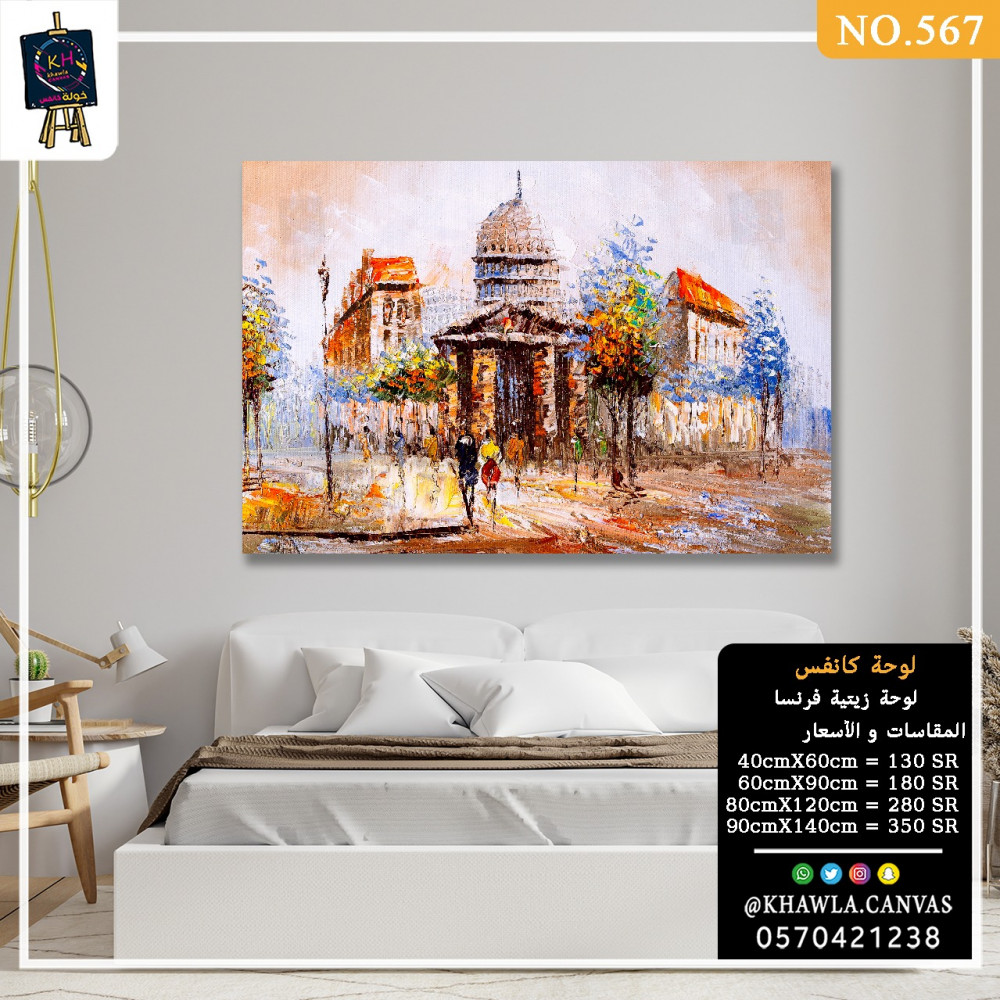 An artistic painting of buildings and streets of France in oil colors , printed on the finest canvas and stretched on a hidden wooden frame.