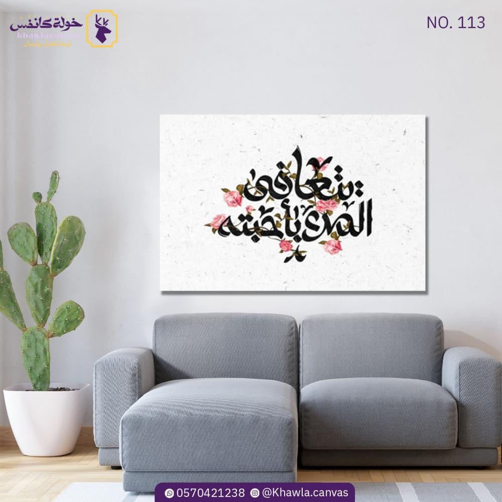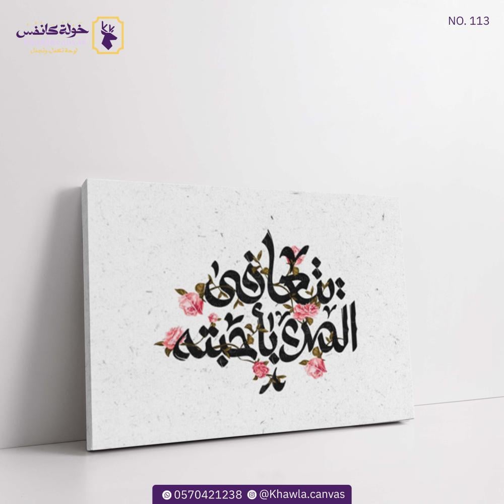 A beautiful Arabic calligraphy mural titled (A person recovers with his loved ones), printed on the finest canvas and stretched on a hidden wooden frame.