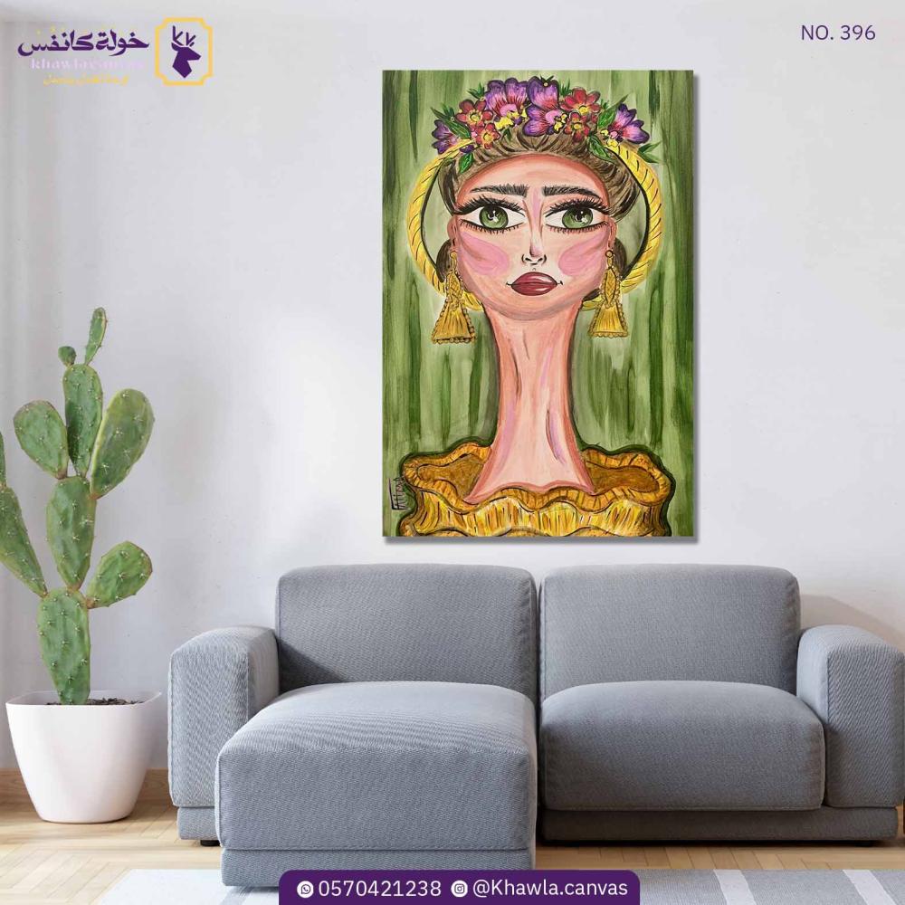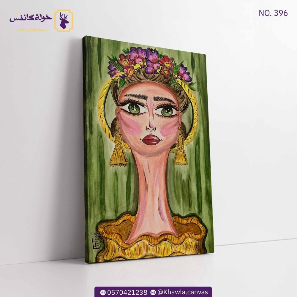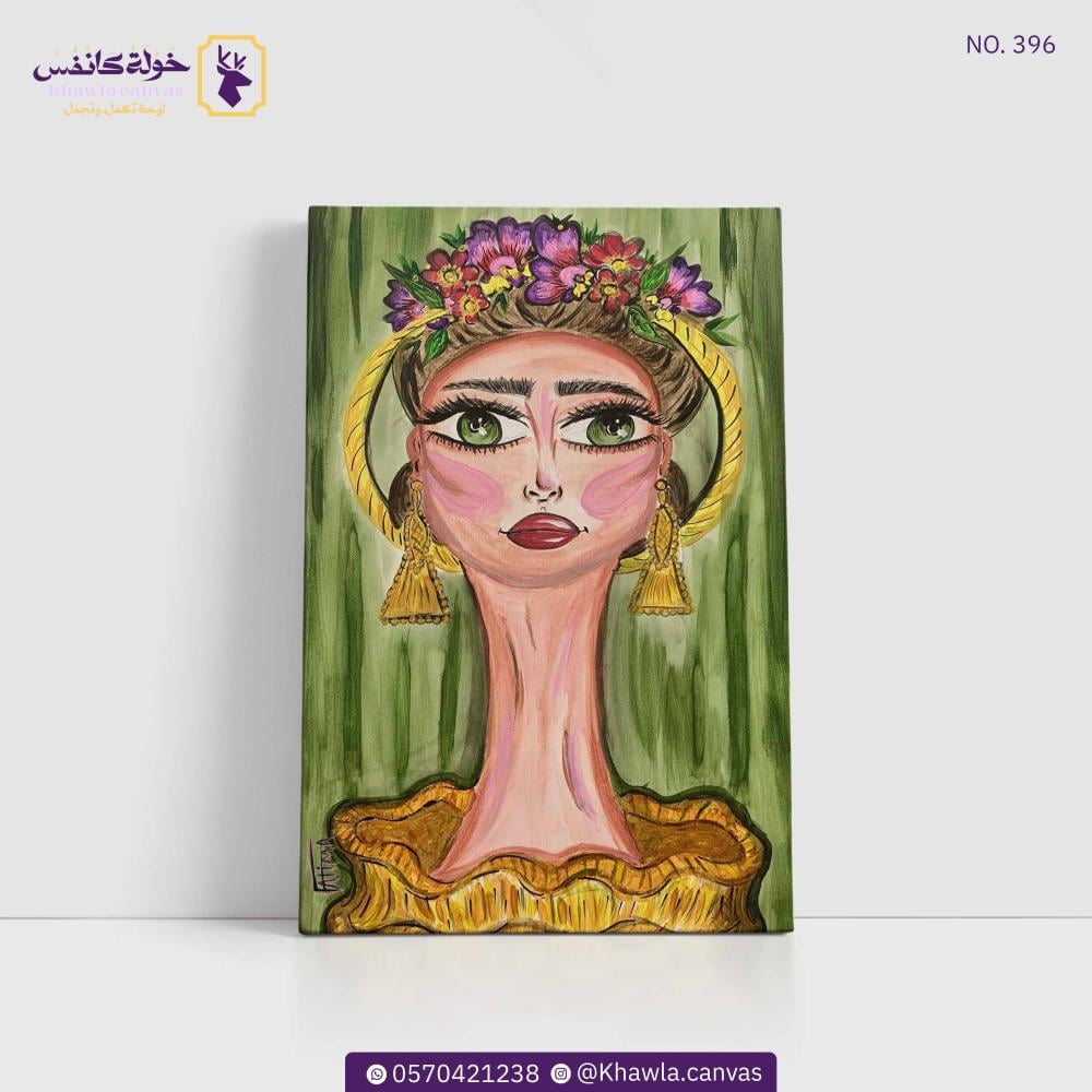 An artwork by Kuwaiti artist Fatima Al-Mahna titled "You Will See" depicting a girl with a long neck, printed on the finest canvas and stretched on a wooden frame, ready for your wall.